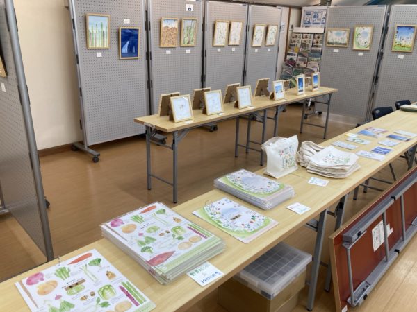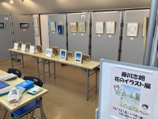 僕が展示している場所はロビーの一角で、広い室内には売店やテーブルがあります。