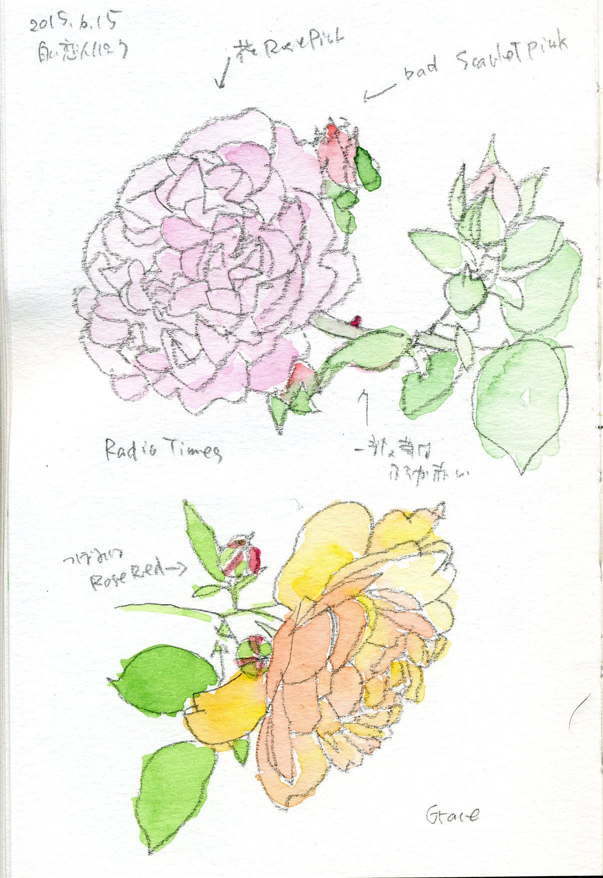 すでにかなり花が終わっていたのと、バラスケッチ疲れ(?)で数枚しかスケッチしませんでした。