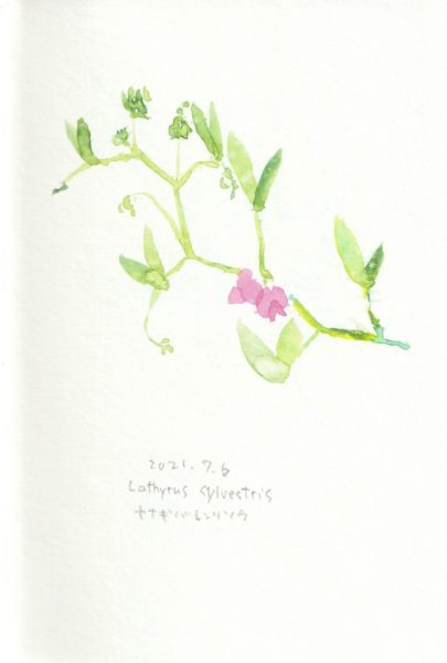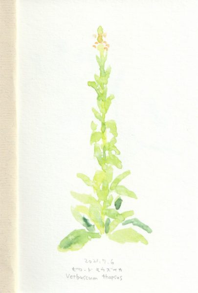 国道の路肩に車を止めてスケッチしていると、なんだか全てのドライバーに「何やってんのだろう」と見られているような気がします。でもまだノコギリソウとか描いてないんです。雨風がひどくなってきたのもありますが、白い花はこの描き方だと難しくて…。