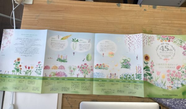 例年だと「春〜夏」と「夏〜秋」の2つのパンフレットがあるのですが、今年は45周年記念ということで通年のパンフレットで農場の歴史を紹介する内容になっています。