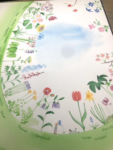 写真だとちょっとくすんでいますが、1つ1つの花も丁寧に描けて、ようやく納得いく絵になりました。
