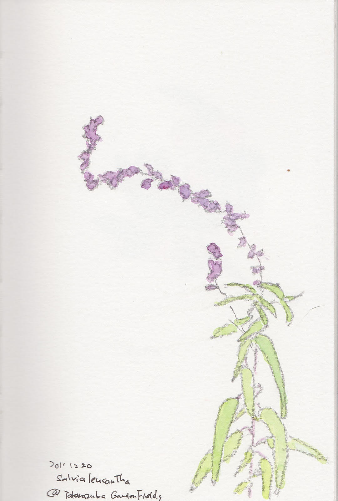 | サルビア・レウカンサ。花がケイトウみたいにモコモコ |