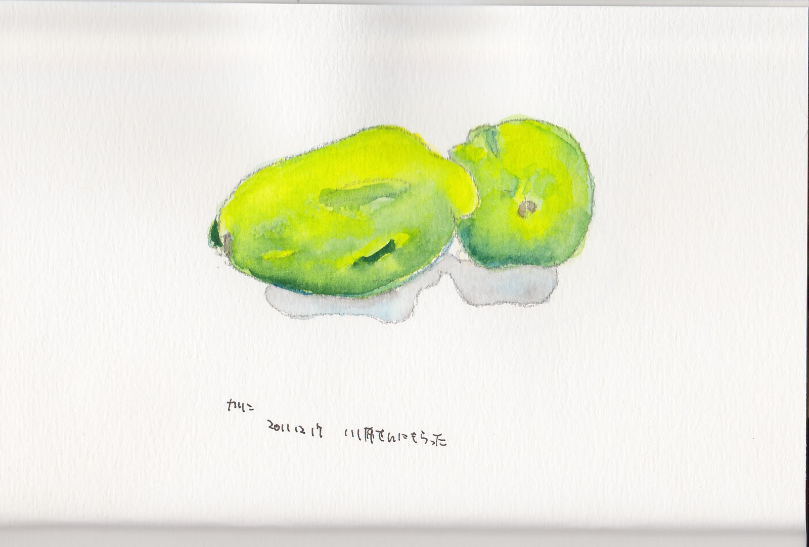 スケッチセットを受け取りに行って、かわりにカリンを2つもらった。