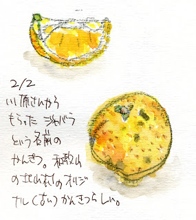 和歌山県の山奥、北山村にだけある柑橘。山深いので他の種類と交雑せず、今まで残ったという話らしい。高校の山岳部時代は奈良とか和歌山の奥にも行ったが、ほんとうに山ばかりで、街と隔絶された感がある。当時、このへんの大峰山地などは先輩から「標高は低いのに日本アルプス並みに山が深い」と教えられた。