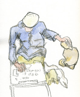 それよりも、この絵を描いているボールペン、シグノのグリーンブラックという色だが、廃盤になったらしい!大変問題で、実はここ半年の線画のほとんどはこのペンで描いていた。これからどの色で描けばよいのか…。でもシグノの0.38mmはグリップの太さがベストで本当に描きやすい。