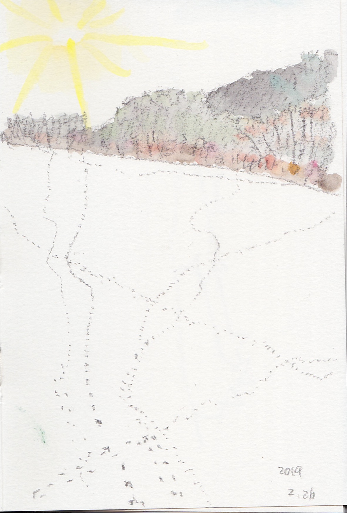 雪の上の散歩 投稿日時: 2014-02-26 投稿者: shiro このところ天気が良いので昼は雪が解けて夜に凍る、という日が続いています。車の運転には困るのですが、雪の上を散歩するにはナイスです。場所によっては踏み込んだ足が全く沈み込まないほど固く締まった斜面もあります。 冬のいいところは夏にはヤブだらけで到底歩けないようなところも1mの積雪で覆ってくれるところ。おかげでとても気持ちがいい散歩になります。 見晴らしのいいピークから石狩平野を望めます。 夜のうちに歩いた動物の足跡が、朝日の陰影で浮かび上がります