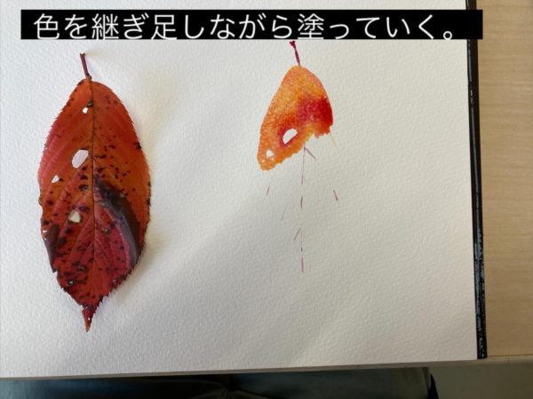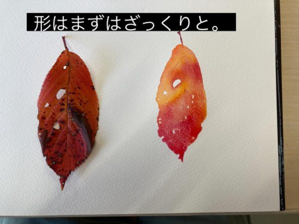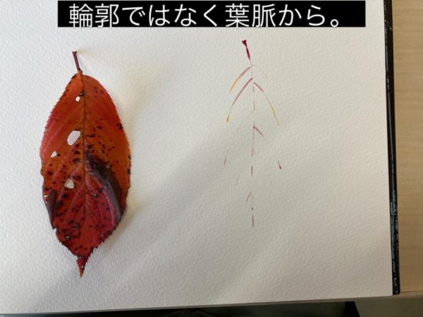 そしてまたサクラの落ち葉を拾ってスケッチしました。せっかくなので、描き方をご紹介します。