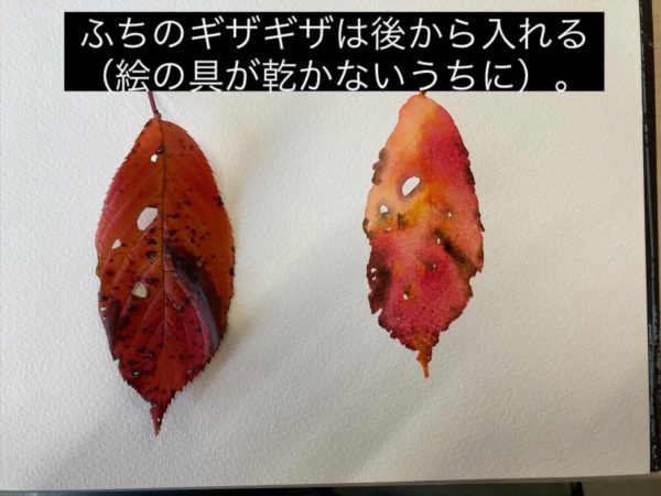 そして絵の具が乾かないうちにギザギザを入れながら形を調整していきます。