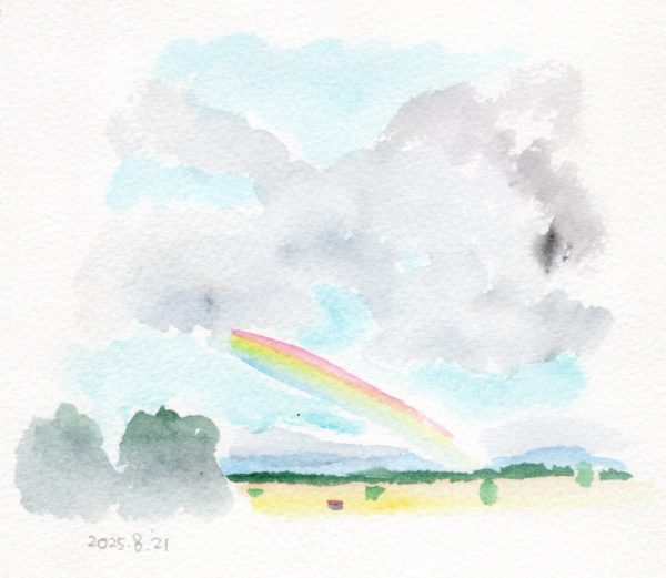 今日はランニング中に虹を見ました。それを写真に撮って、家に帰ってから絵に起こしました。