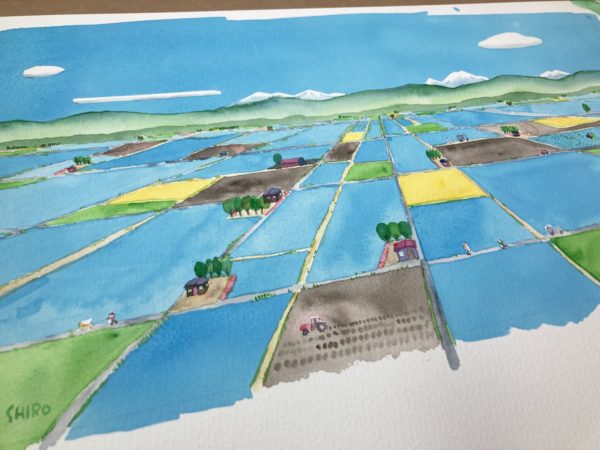 ところで岩見沢バラ園での展示が近づいてきました。26日木曜日からです。前日25日が設営、その前の24日はフレームに入れたり、絵のプレートを作ったりの作業ですから、制作ができるのは23日月曜日、つまり明日だけになりました。