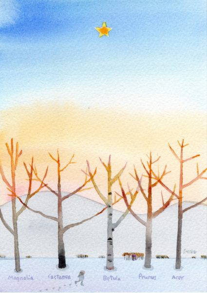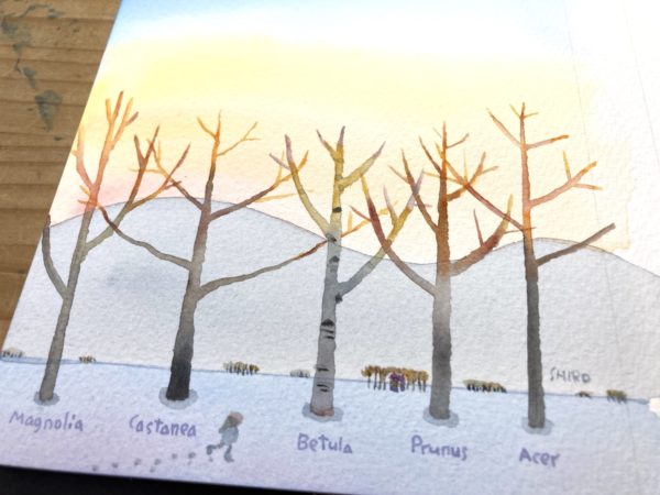秋の絵はこのくらいにして、冬至も過ぎたことだし、そろそろ春の絵を描いてみてもいいかなと思いました。