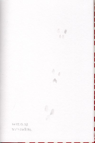 今朝は久しぶりにずいぶんと冷え込みました。それと軽く雪が積もったので、動物の足跡がたくさん見られました。